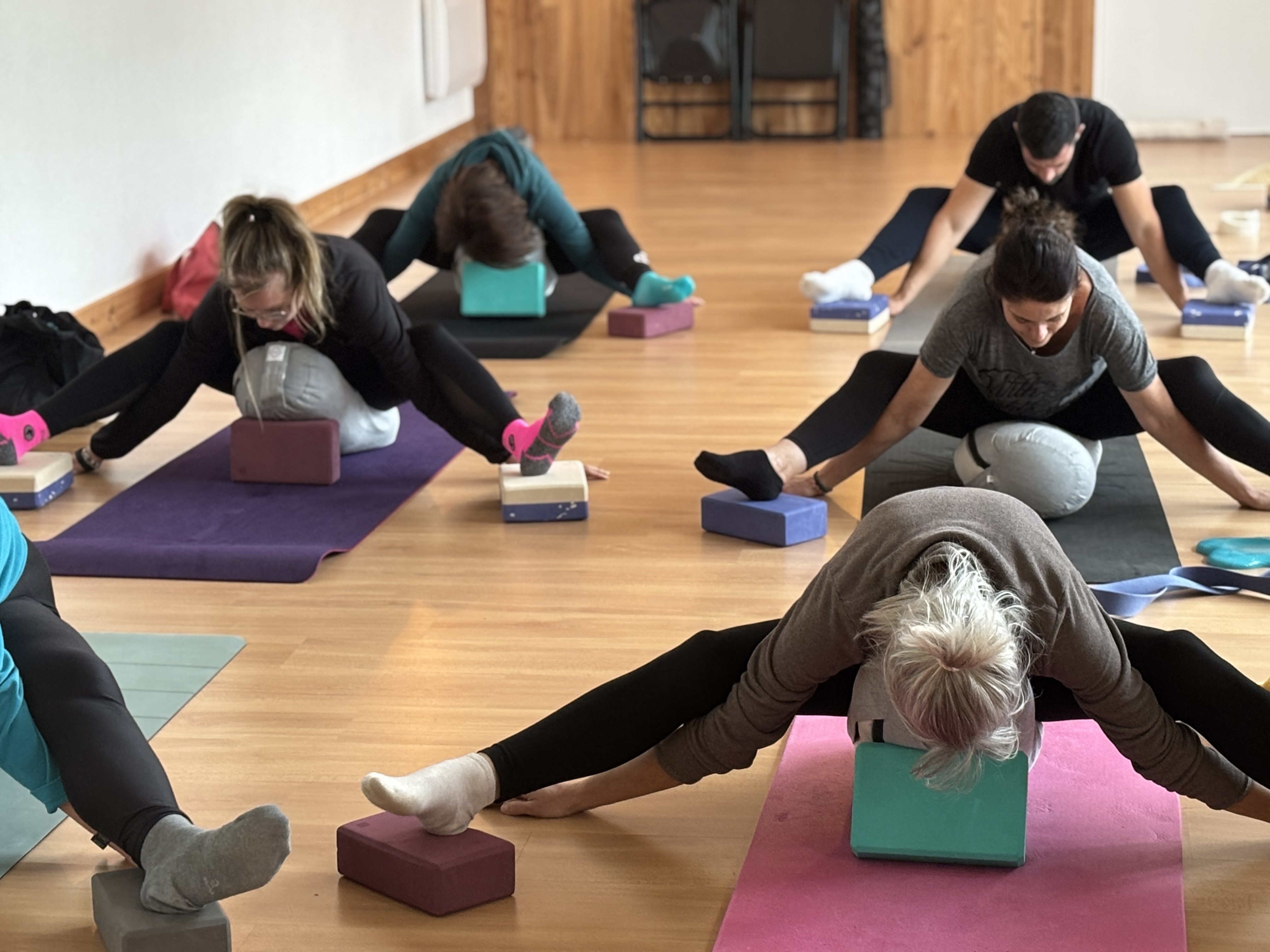 - une utilisation experte des supports (sangles, briques, bolsters) pour installer la tenue juste,